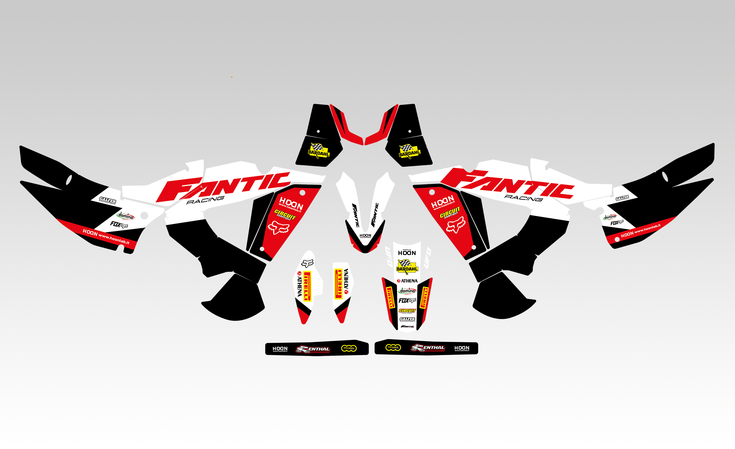 Hoon Lab realizza Grafiche professionali con prodotti Premium in commercio, al fine di garantire una massima resa cromatica e durata nel tempo. Stampa, lavorazione e Grafica Made in Italy presso la nostra sede. Materiali utilizzati? Gli stessi che vengono utilizzati nel Supercross Americano e MXGP.